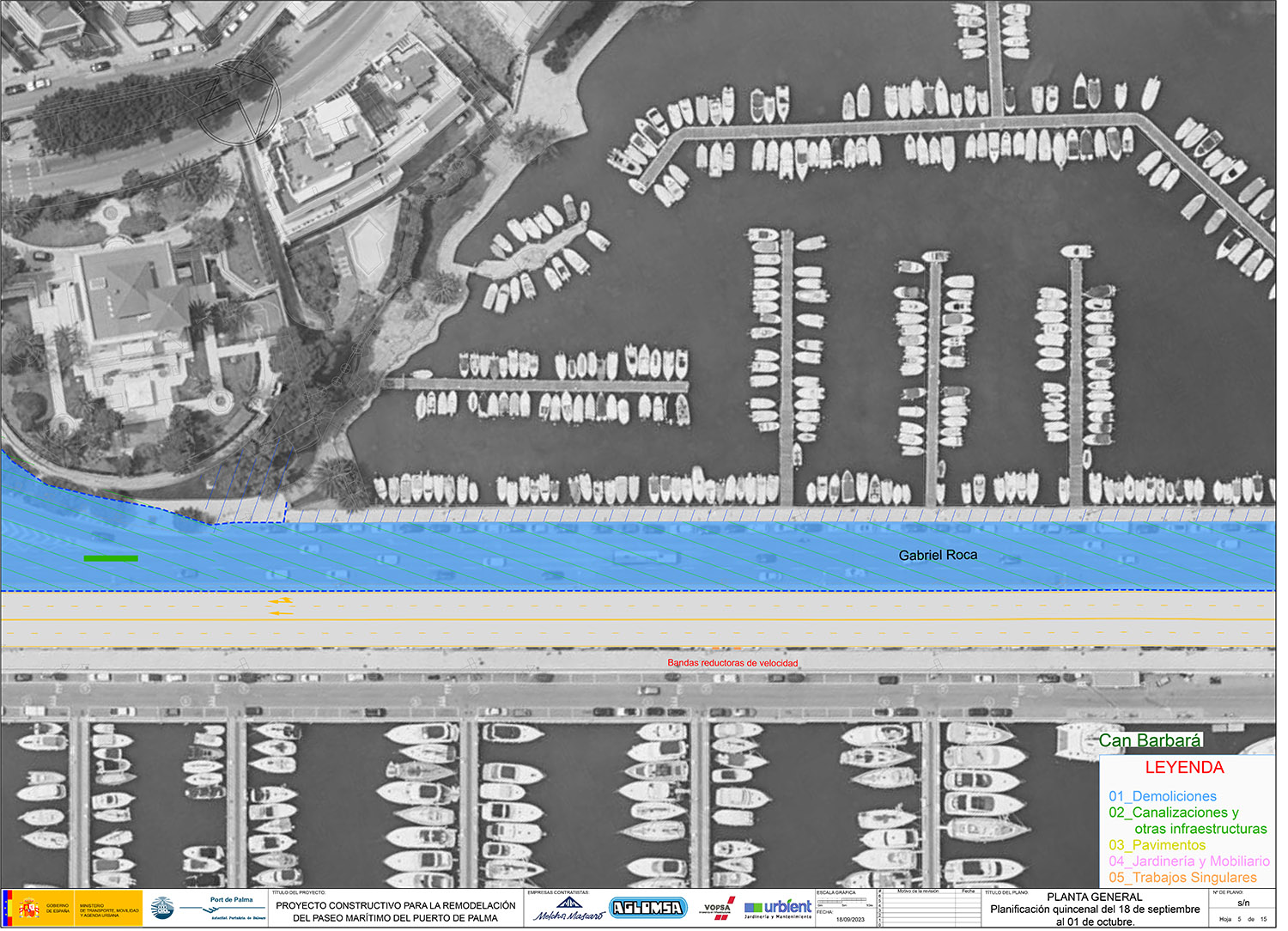La Fase 1 ha concluido con la puesta en servicio de los carriles de circulación en sentido Portopí, desde la Avda. Argentina hasta la Torre Paraires. Actualmente, nos encontramos en la Fase 2.