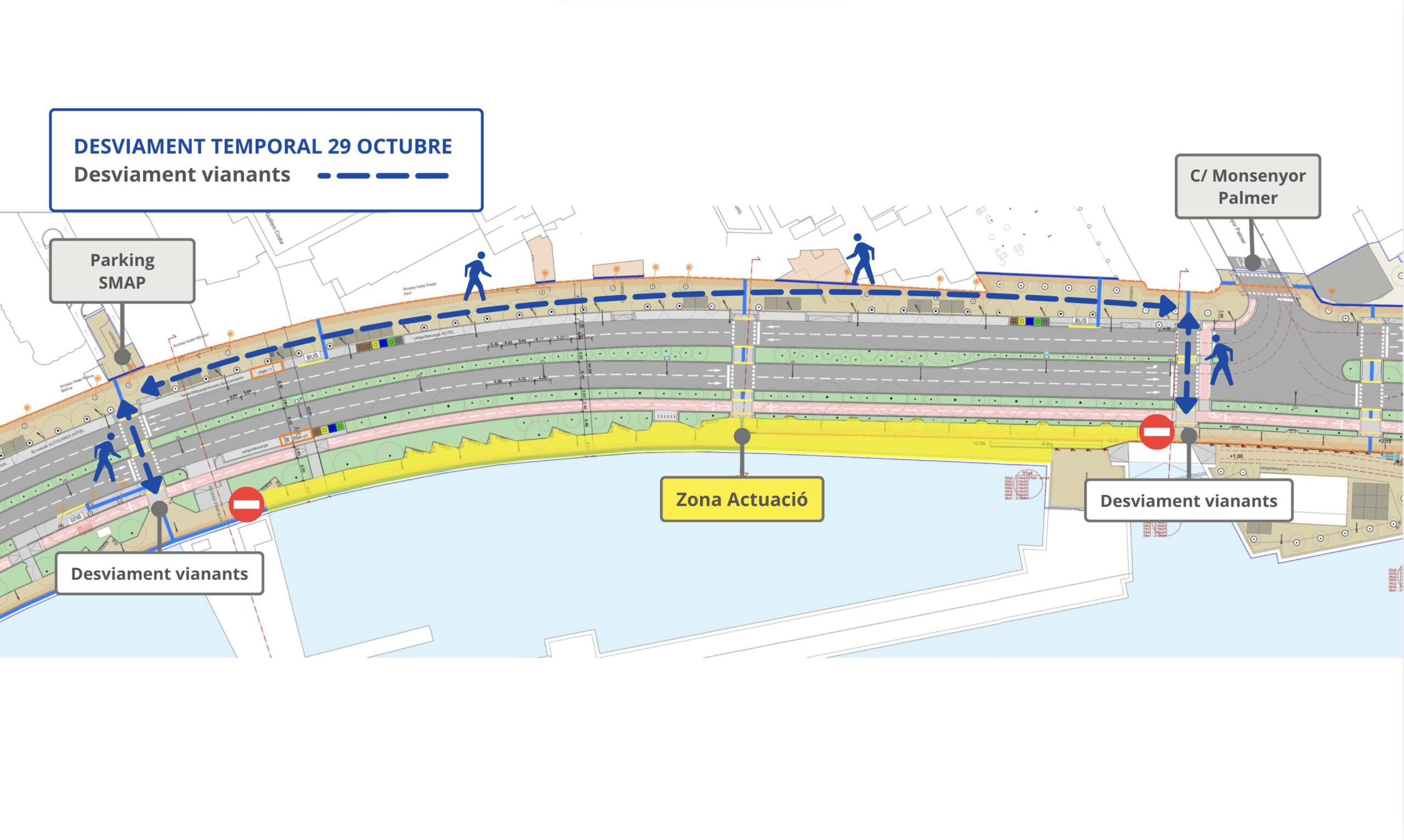 Dijous, 30 d’octubre de 2025. L’Autoritat Portuària de Balears (APB) desviarà de forma provisional a partir d’avui, dijous 30 d’octubre, i durant un termini de dues setmanes, el tram per a vianants en el tram de l’avinguda Gabriel Roca (costat mar), comprès entre la instal·lació nàutica Naviera Balear i el torrent de Sant Magí.